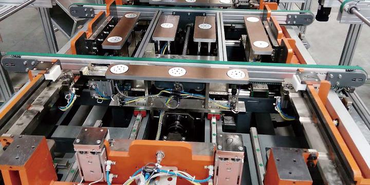 移載機械手采用多軸伺服電機,全方位機械臂,同時抓取4塊邊框自動翻轉移動到位。
