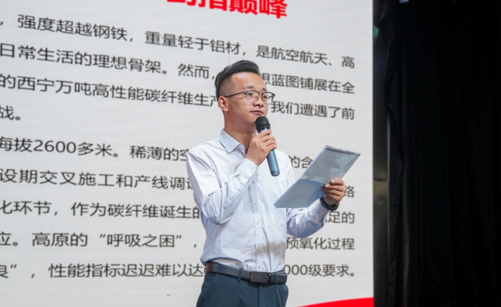 “5年前,我是項目現場的一名女技術員;今天,我們建成了全球海拔最高的碳纖維生產基地?!笔字v人柴娟的開場白,將聽眾帶回西寧基地建設現場。她帶領團隊攻克聚合車間建設難題,實現一次性試車成功,保障了全球最大單體碳纖維基地的穩定運行。這位曾被稱為“學生女工長”的85后,用五年堅守踐行著“材料創造美好世界”的使命。