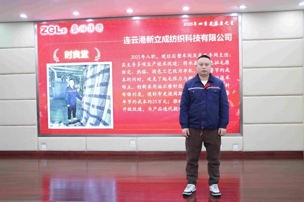 時良堂,中共黨員,2021年加入鷹游新立成紡織公司,現(xiàn)任后整車間及成品車間主任。任職期間,他主導多項生產(chǎn)技術(shù)改進:將水晶超柔色拉毛多道工藝整合為單軋,節(jié)約成本的同時攻克技術(shù)難點,解決生產(chǎn)難題;創(chuàng)新采用油石磨針技術(shù),將針布更換周期從1年延長至3年,降低企業(yè)成本;推動雙面兔毛研發(fā)設(shè)備升級改造,為產(chǎn)品迭代提供關(guān)鍵技術(shù)支撐。