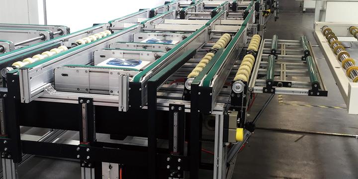 混出定位單元將層壓機中完成層壓工藝的組件分別定位輸送至生產線上。